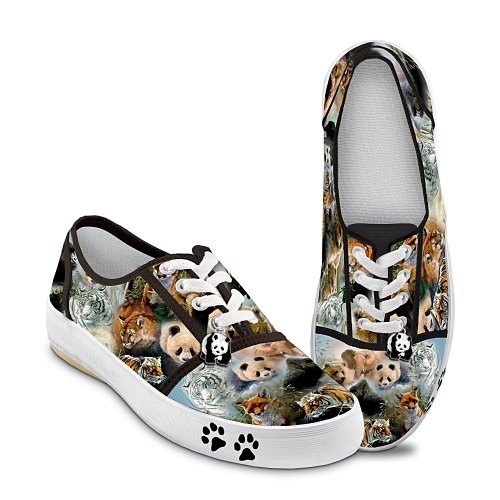 Step into a fashion essential that shows your sense of style as well as your fondness for endangered wildlife. These women's shoes with wildlife art help support the preservation of endangered animals because a portion of the proceeds will be donated to preserving wildlife around the world. These unique wildlife art sneakers are available exclusively from The Bradford Exchange, ready to add something wild to your everyday shoe wardrobe.You'll be walking in comfort to help animals when you wear these stylish sneakers showcasing the stunning, realistic wildlife art of noted naturalist artist John Seerey-Lester™. These exclusive sneakers feature a canvas upper covered in a dramatic artistic collage of some of the world's endangered species - the white tiger, cougar, panda, and more - while the white rubber soles and foam insoles promise wear-anywhere comfort. Animal paw silhouettes on the soles and enameled panda charms dangling on the laces add extra touches of fashion detail. Strong demand is expected, and you won't want to miss out. Order now!Available at Amazon Check Price Now!